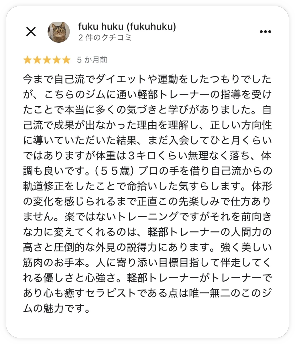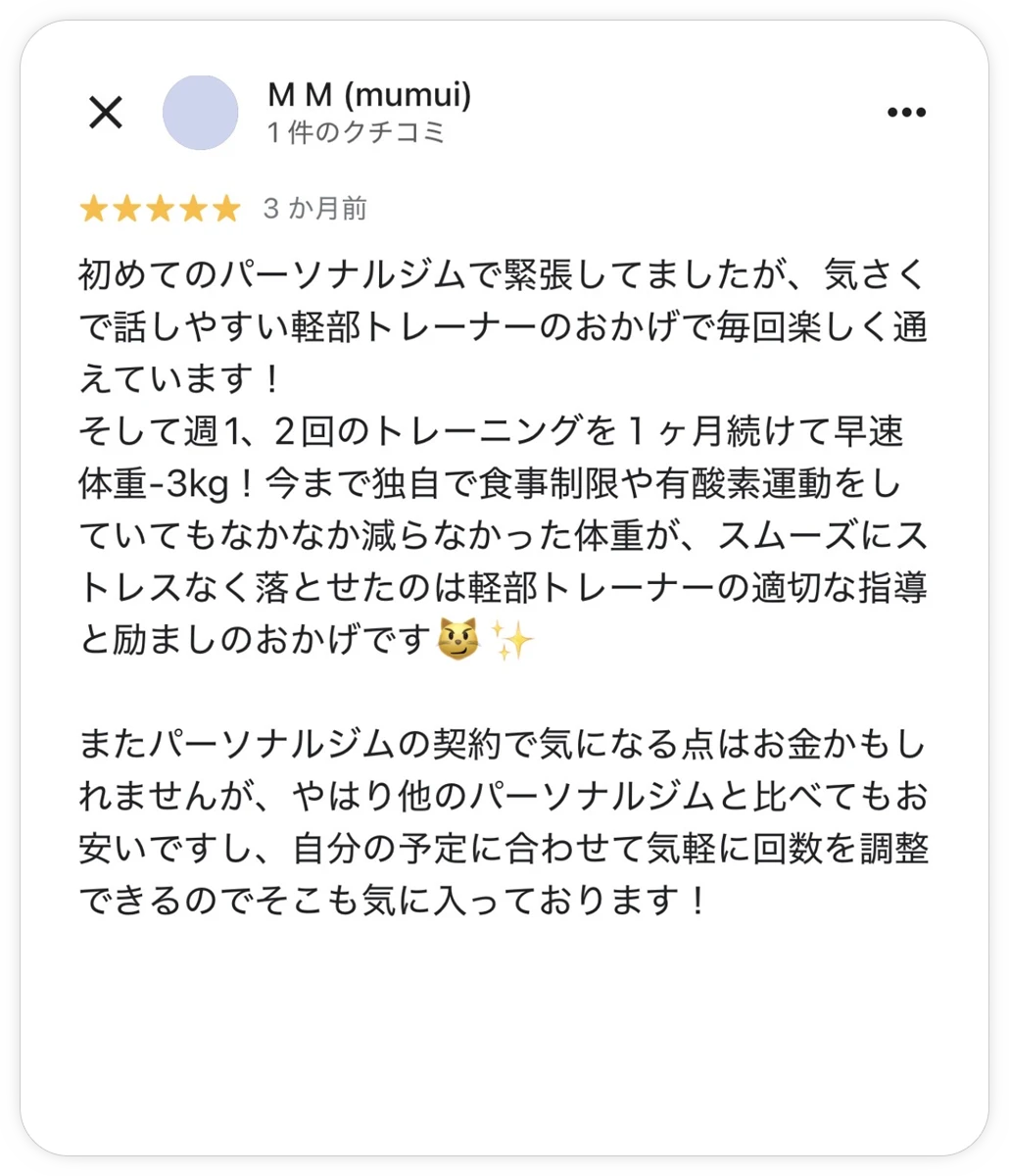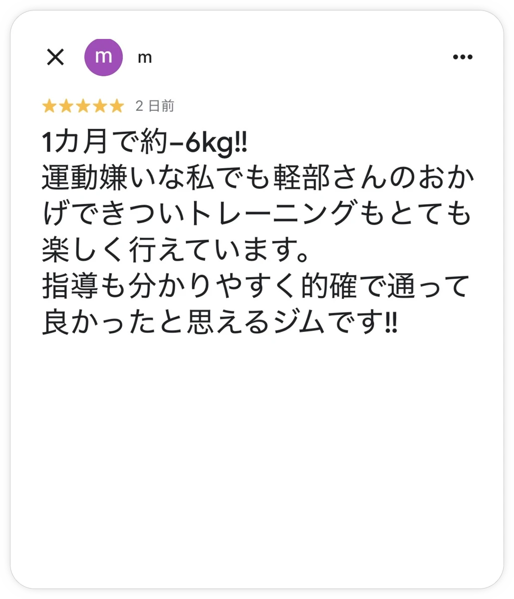 A、気持ちすごくわかります!『ダイエットって辛い』そういうイメージありませんか?もう大丈夫です。ご安心ください!他のお客様でも、最初は同じように【苦手意識】を持たれているいらっしゃる方も多いです。ですが我々は苦手意識を払拭するだけでなく、楽しみながら成果を出せます!二人三脚で一緒に頑張りましょう!
