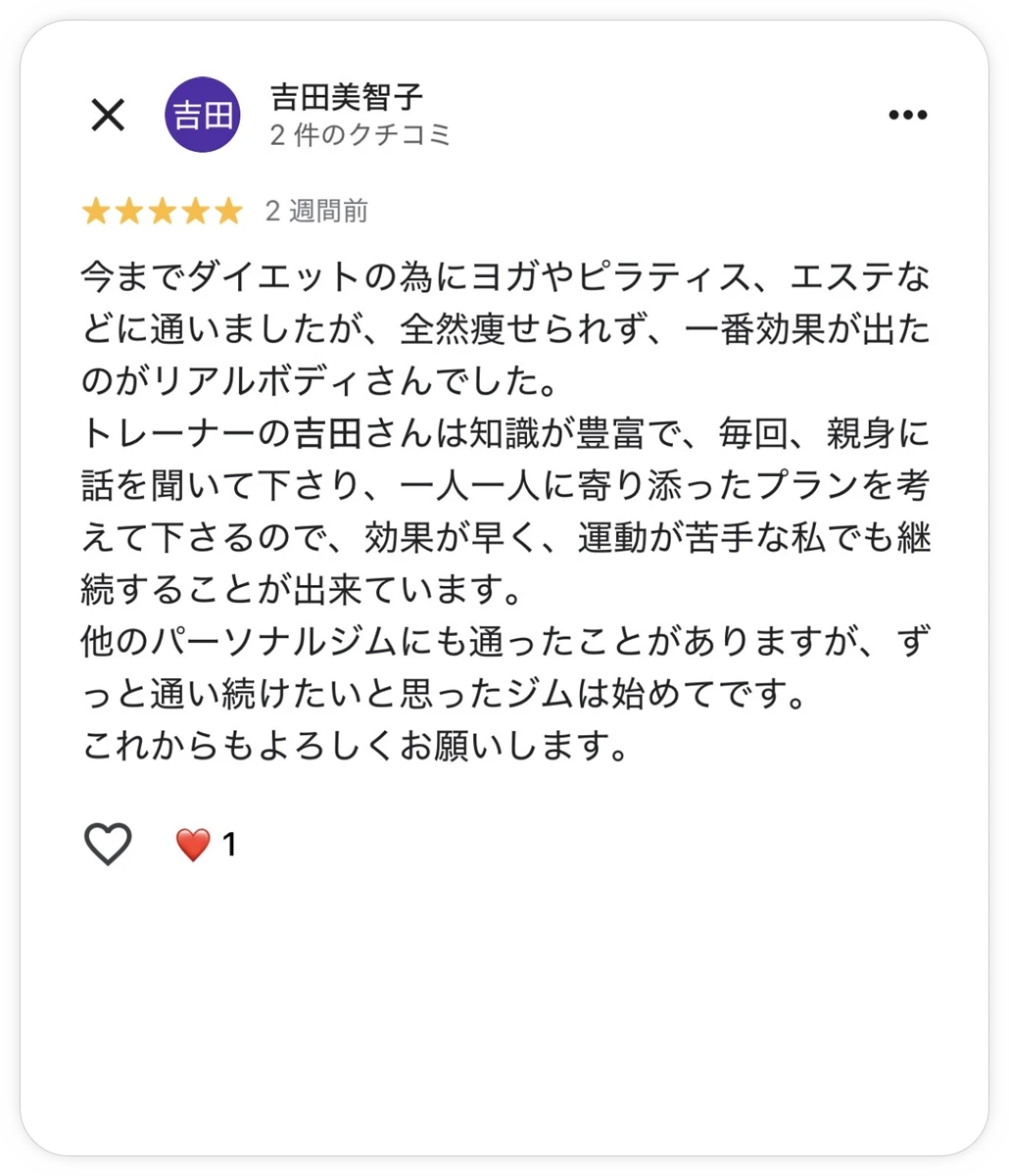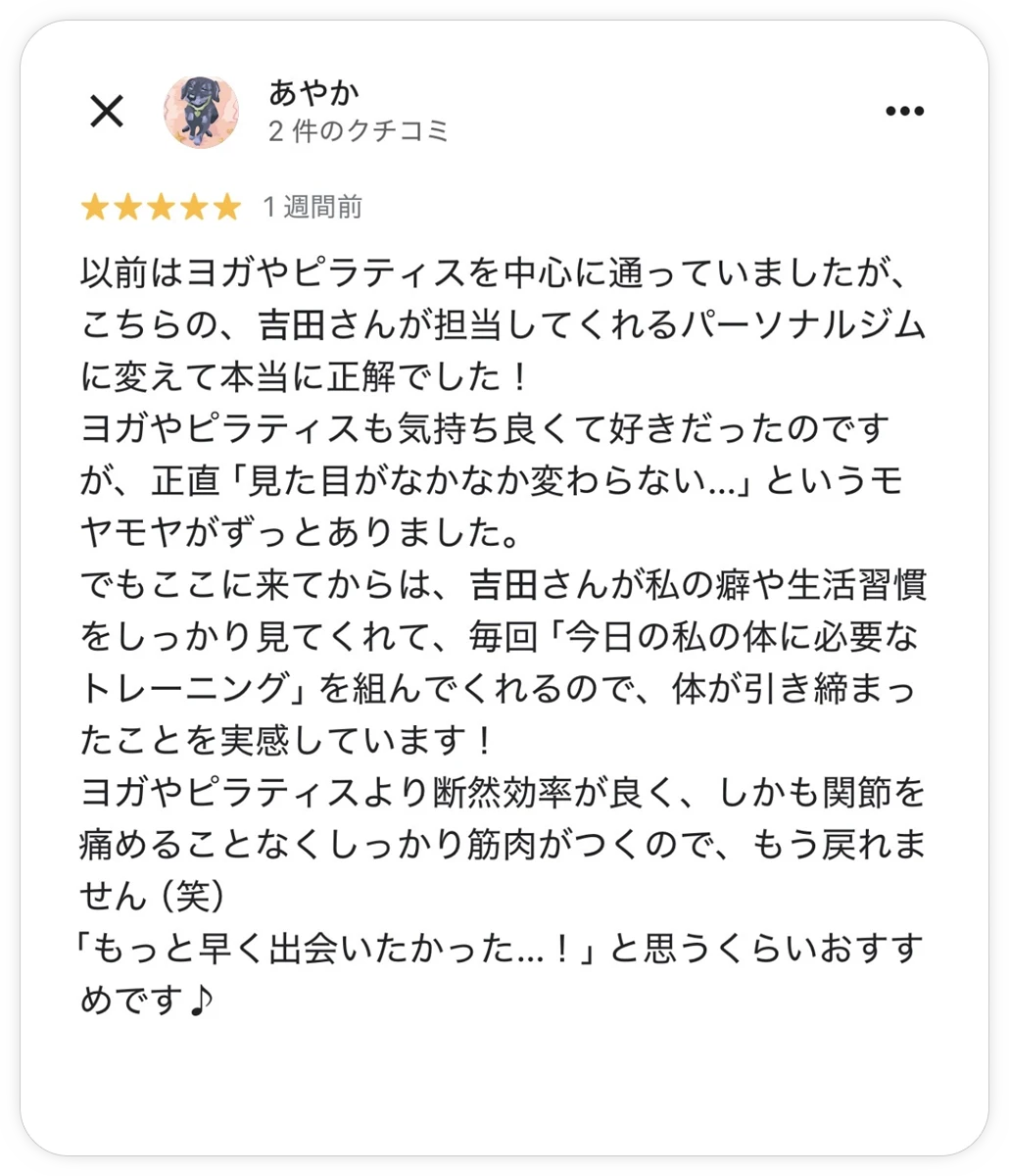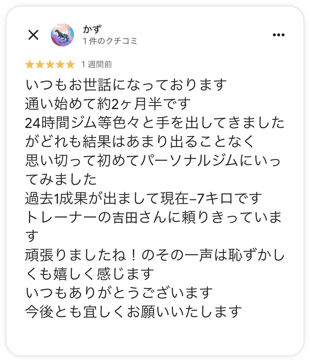 A、気持ちすごくわかります!『ダイエットって辛い』そういうイメージありませんか?もう大丈夫です。ご安心ください!他のお客様でも、最初は同じように【苦手意識】を持たれているいらっしゃる方も多いです。ですが我々は苦手意識を払拭するだけでなく、楽しみながら成果を出せます!二人三脚で一緒に頑張りましょう!
