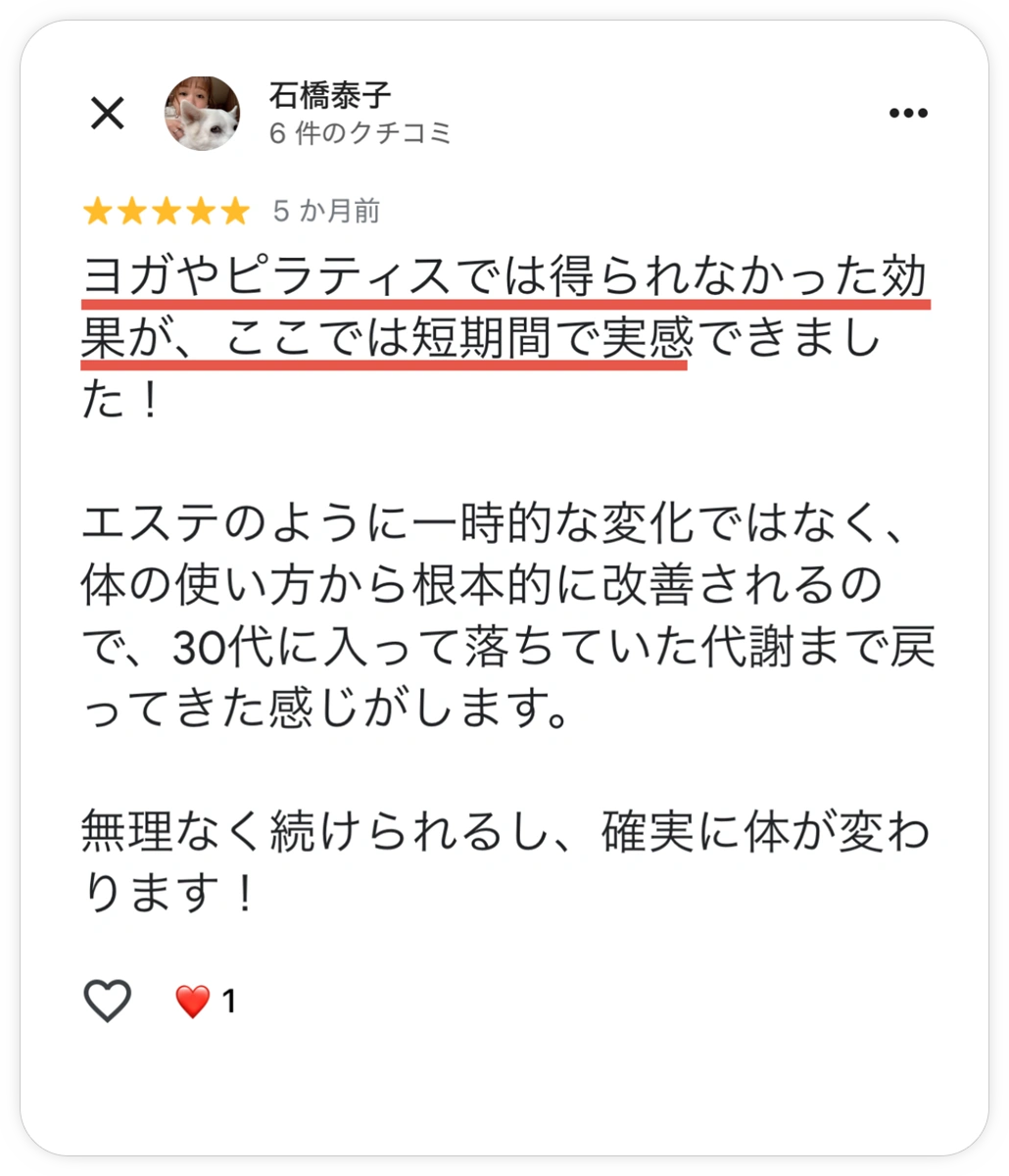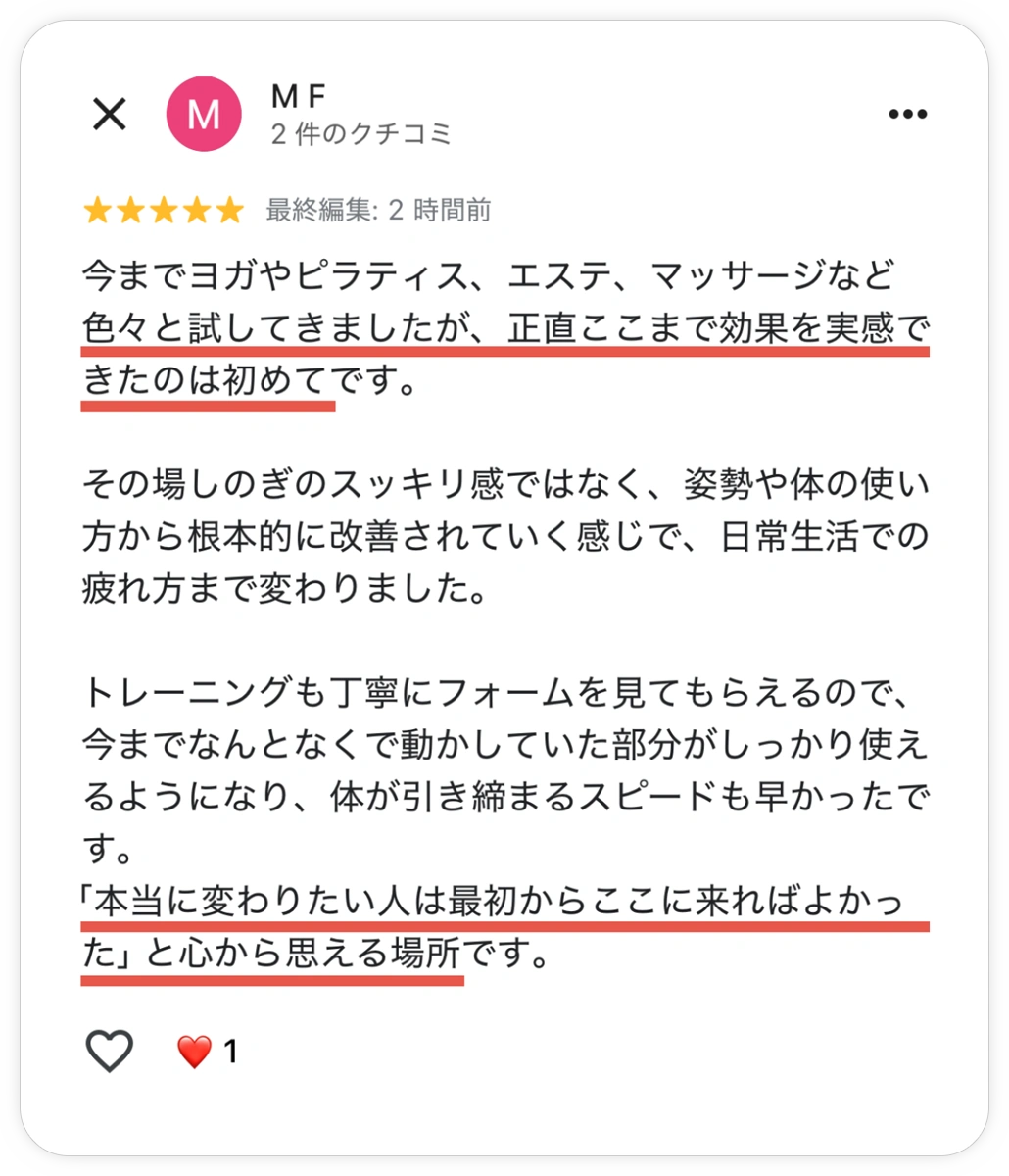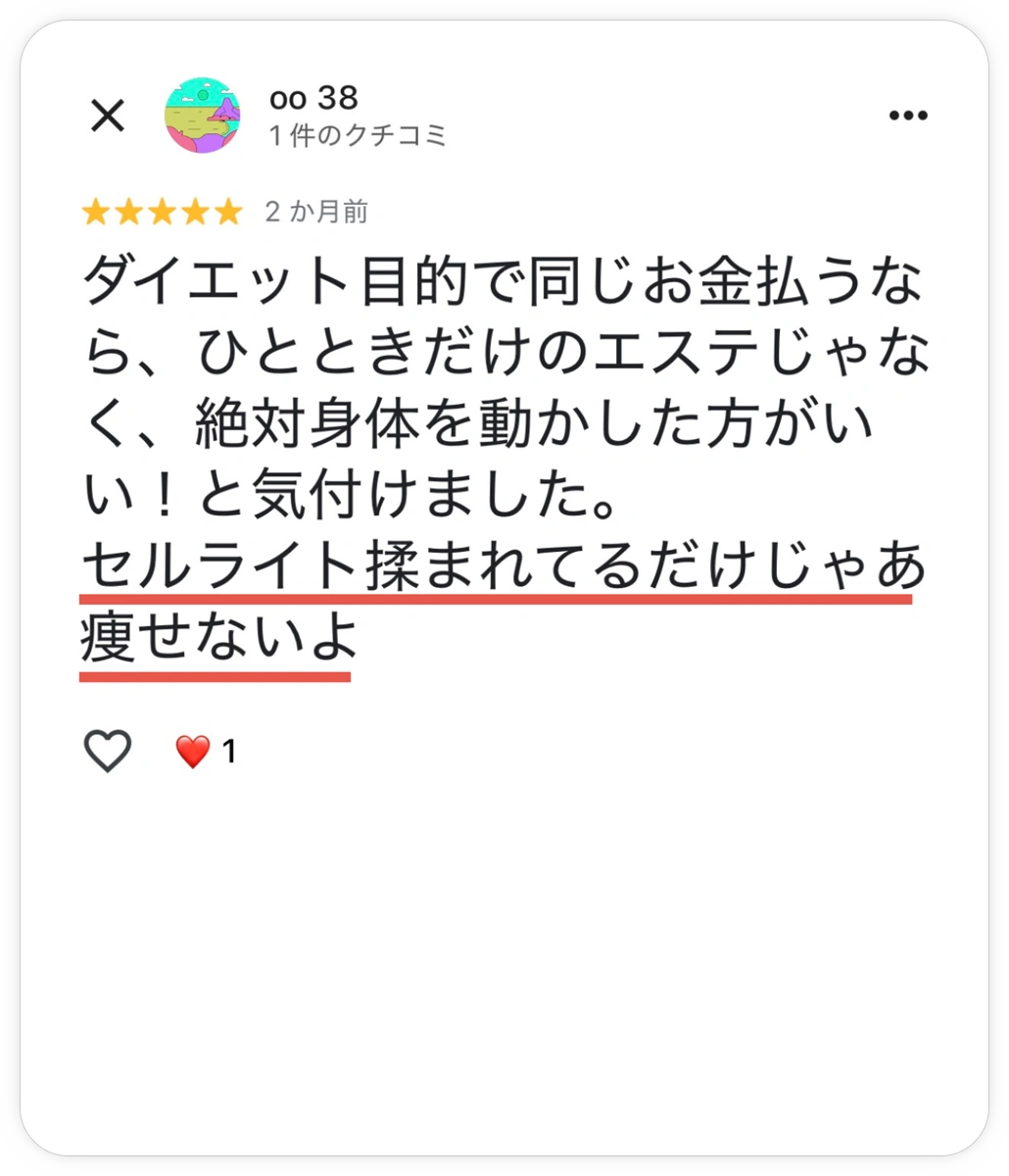 A、気持ちすごくわかります!『ダイエットって辛い』そういうイメージありませんか?もう大丈夫です。ご安心ください!他のお客様でも、最初は同じように【苦手意識】を持たれているいらっしゃる方も多いです。ですが我々は苦手意識を払拭するだけでなく、楽しみながら成果を出せます!二人三脚で一緒に頑張りましょう!