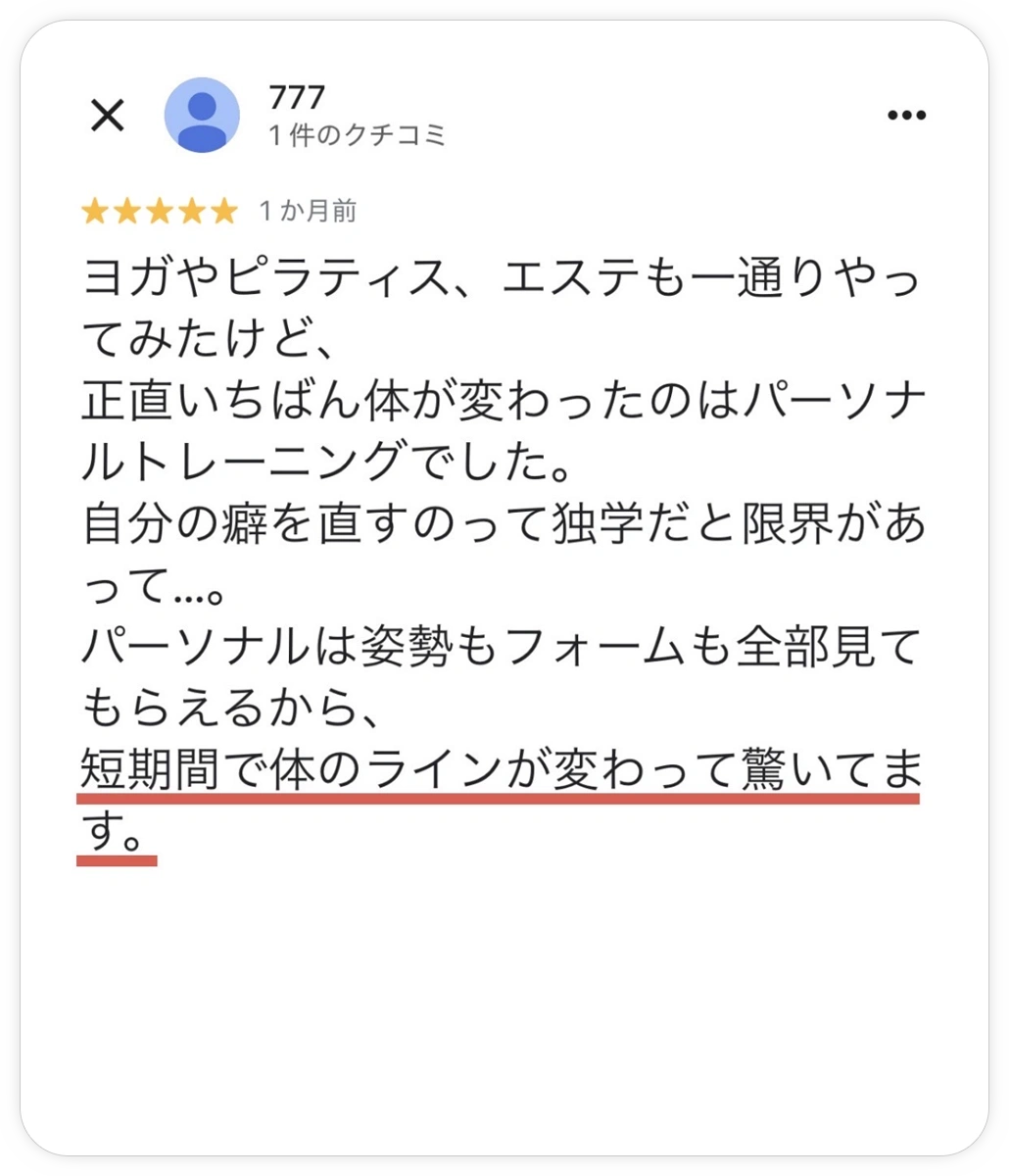 A、もちろんです!!筋トレやスポーツジム、ランニングやヨガを始めても【三日坊主】で終わった。。【モチベーションが続かない】。。そして、結局結果がでない。はっきり言います!!一人で痩せられるのはほんの一握りの方だけです。だからこそ、あなたは一人で頑張らないで下さい。すべて我々にお任せください。あなたが【最短】で痩せる方法を知っていますのできっと継続したくなります!
